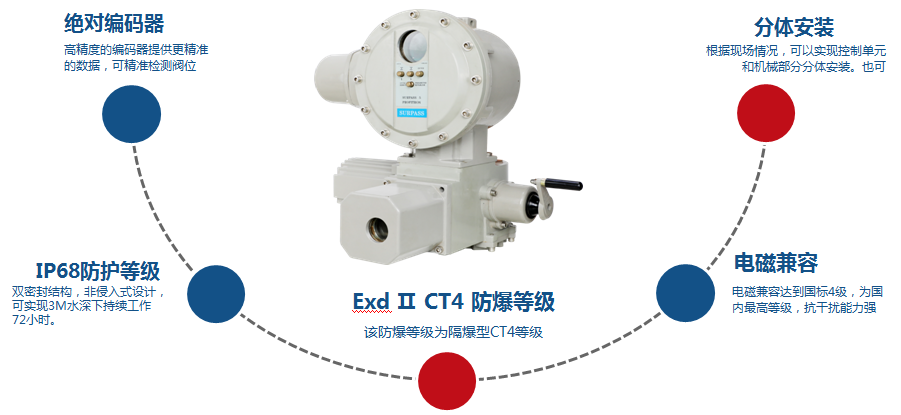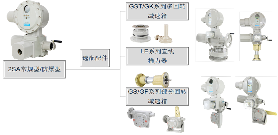 變頻型多回轉(zhuǎn)電動裝置應(yīng)用于閘閥,截止閥,其多回轉(zhuǎn)電動執(zhí)行器可擴展為直行程和角行程,適用于各種閥門類型和連接形式。2SA系列執(zhí)行機構(gòu)采用絕對編碼器的反饋裝置,具備IP68的防護等級,采用智能一體化結(jié)構(gòu),防爆等級滿足Exd Ⅱ CT4的等級要求。